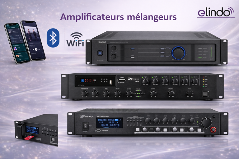 Les amplificateurs mélangeurs 8 Ohms offrent une solution complète pour le mixage des sources audio et l’amplification basse impédance.