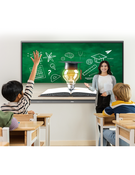 Son écran 75 pouces 4K UHD assure une parfaite lisibilité même au fond de la classe.