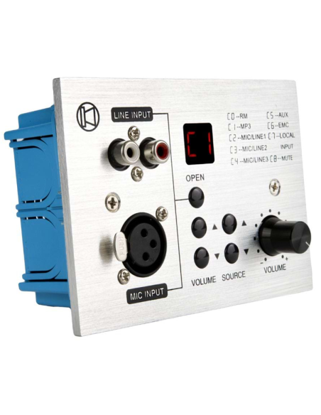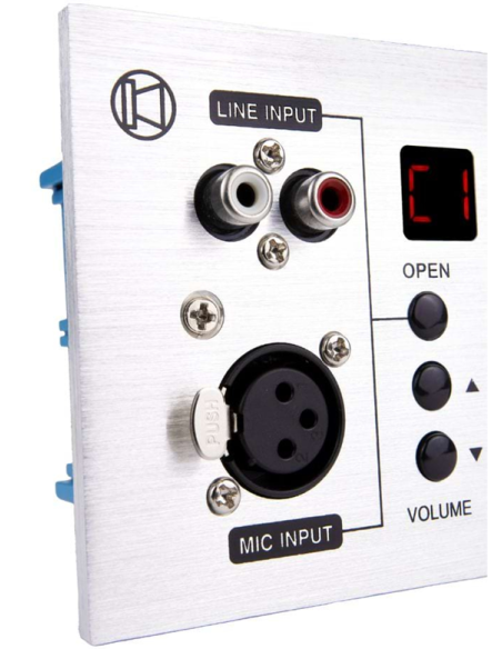 La platine murale RONDSON AMX-4C est spécialement conçue pour les environnements nécessitant une animation locale, comme les EHPAD, salles communes, hôtels ou espaces polyvalents. Elle permet de gérer directement depuis le mur la diffusion musicale, tout en offrant la possibilité de brancher un microphone filaire en XLR pour les annonces ou animations, ainsi qu’une source audio externe via RCA.