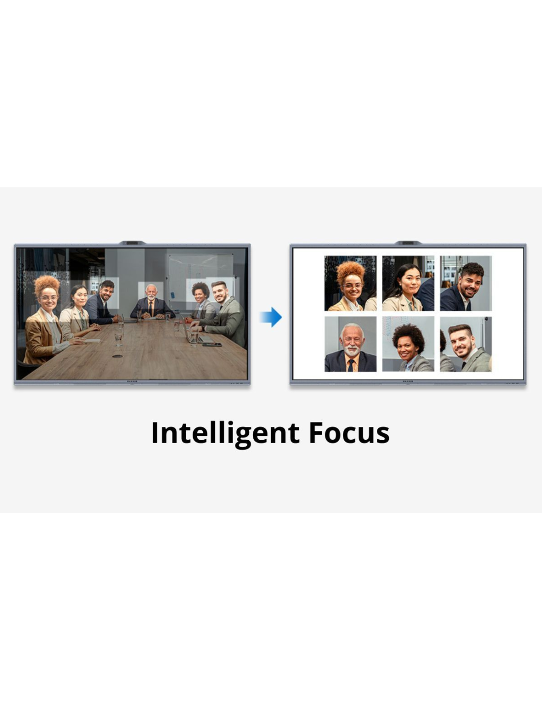 L’écran ajuste automatiquement l’angle et le cadrage en fonction du nombre et de la position des participants pour une expérience immersive naturelle.