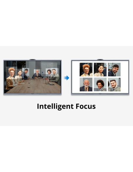 Le cadrage s’adapte automatiquement au nombre de personnes et à leur position, garantissant une expérience immersive et naturelle en réunion hybride.