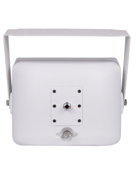 Son coffret en résine ABS, sa grille en aluminium, son étrier de fixation en U et son indice de protection IP66 assurent une résistance optimale aux intempéries, aux projections d’eau et à la poussière.