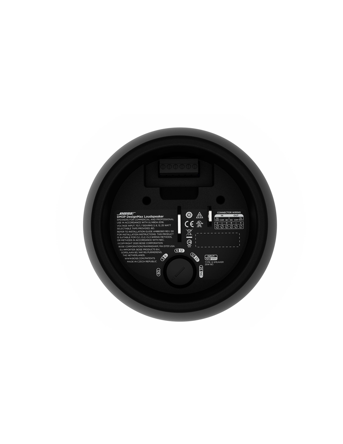 Le système de suspension monopoint encastré dissimule la quincaillerie et le câblage, offrant une intégration visuelle haut de gamme, parfaite pour les concepts architecturaux modernes. Compatible 70V / 100V ou 8 ohms, la DM3P s’intègre facilement aux systèmes audio distribués professionnels, sans nécessiter de DSP externe (optimisations disponibles avec amplificateurs Bose Professional).