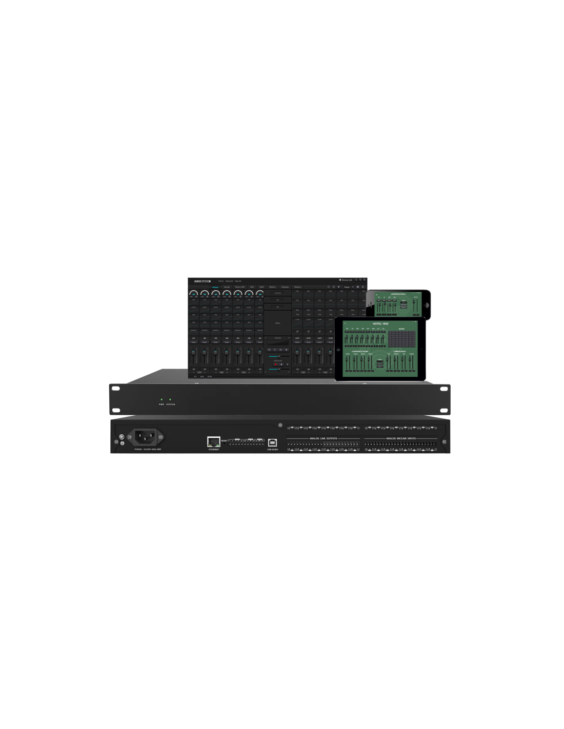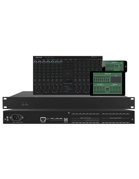 La OPTIMUS MXD-88 est une matrice audio numérique haut de gamme intégrant un DSP puissant et une gestion complète des signaux audio pour les environnements professionnels. Elle permet de router, traiter et diffuser plusieurs sources audio vers différentes zones, avec une qualité sonore irréprochable et une grande souplesse de configuration.
