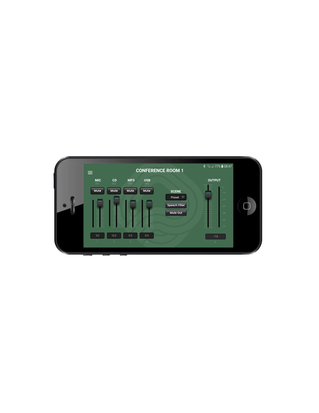 Son processeur DSP 48 kHz / 24 bits intègre des fonctions avancées indispensables en sonorisation professionnelle : égalisation, compresseur, limiteur, contrôle automatique de gain (AGC), anti-larsen, automixeur, annulation d’écho, suppression de bruit, délais et filtres.