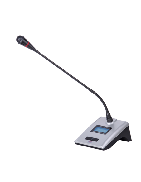 Le pupitre est équipé d’un col de cygne avec bouton de prise de parole ergonomique, garantissant une utilisation intuitive et professionnelle.