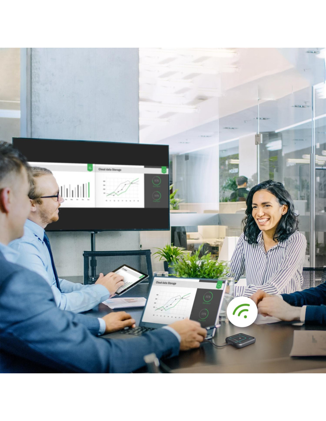 Grâce à sa connexion WiFi double bande 2,4 GHz / 5 GHz (MIMO) et à son cryptage AES-256, il garantit une transmission stable et sécurisée des données.