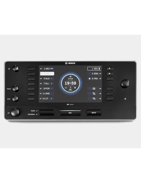 Le poste d’interprète Bosch DCNM-IDESK est un équipement haut de gamme destiné aux systèmes de conférence numériques Bosch DICENTIS. Il a été spécialement conçu pour offrir une expérience de travail fluide, rapide et sécurisée aux interprètes professionnels lors de conférences multilingues, congrès internationaux, institutions publiques et événements corporate.
