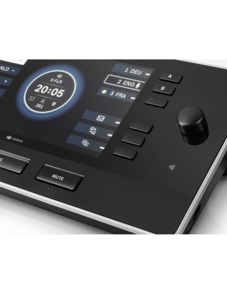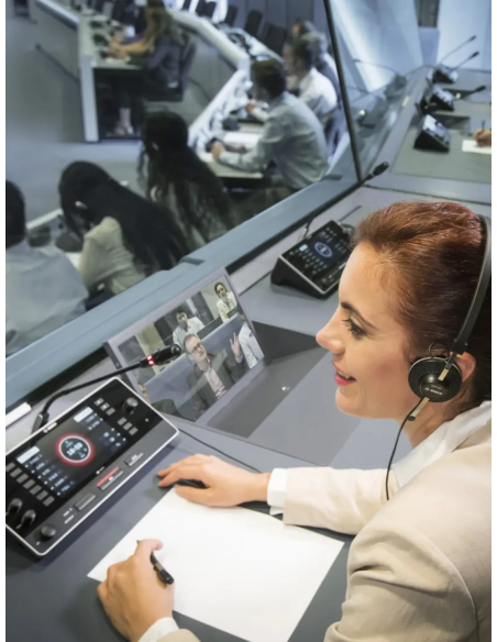 Grâce à son interface intuitive, son écran couleur 7 pouces haute résolution, ses commandes tactiles avec retour haptique et ses boutons en relief pour utilisateurs malvoyants, le DCNM-IDESK réduit considérablement les erreurs de manipulation et améliore la concentration de l’interprète.