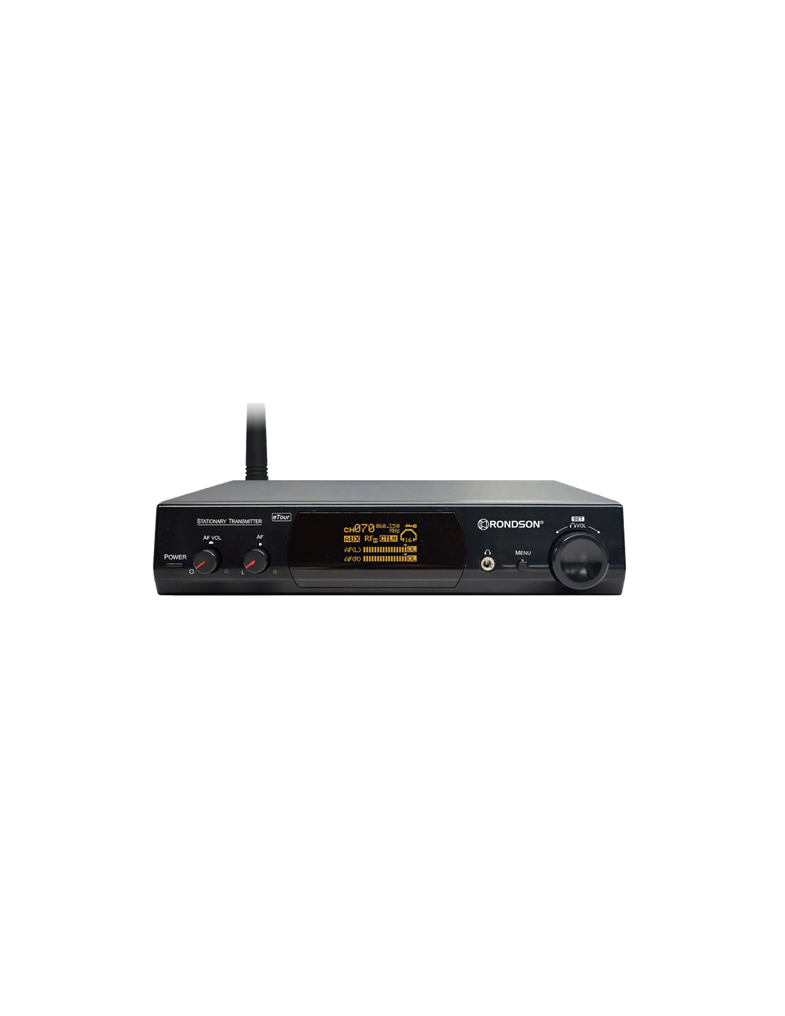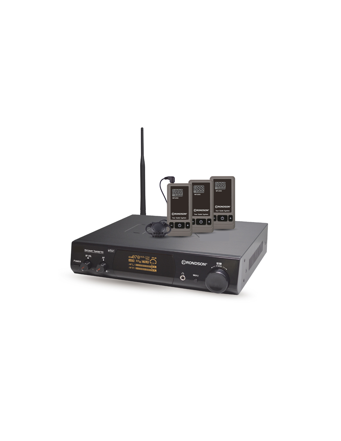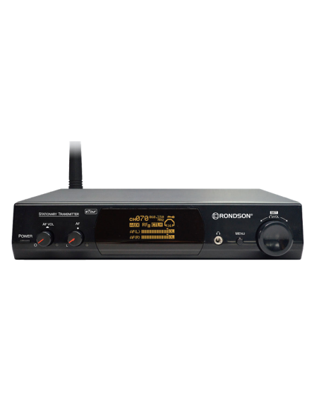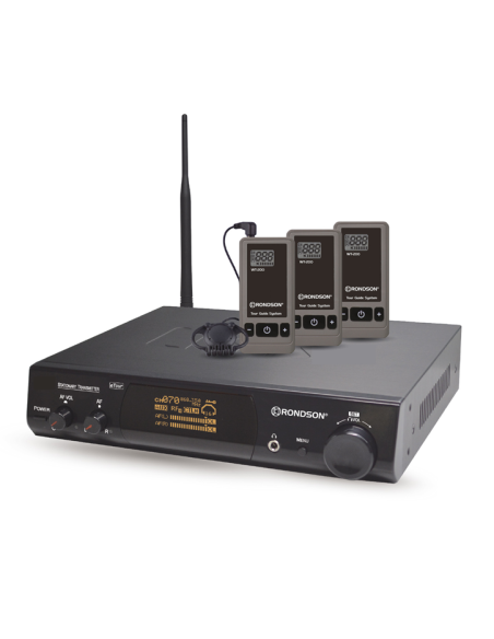 La ST-200T est une station émettrice fixe UHF destinée à transmettre un signal audio numérique fiable vers des récepteurs portables WT-200R utilisés par les visiteurs ou auditeurs.